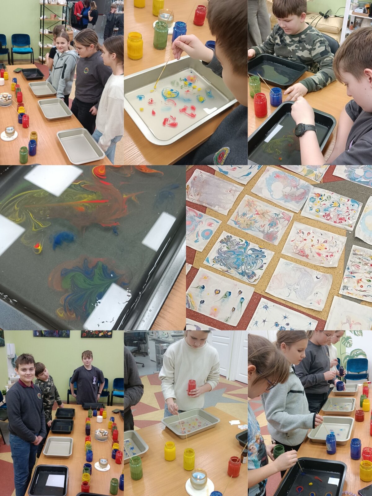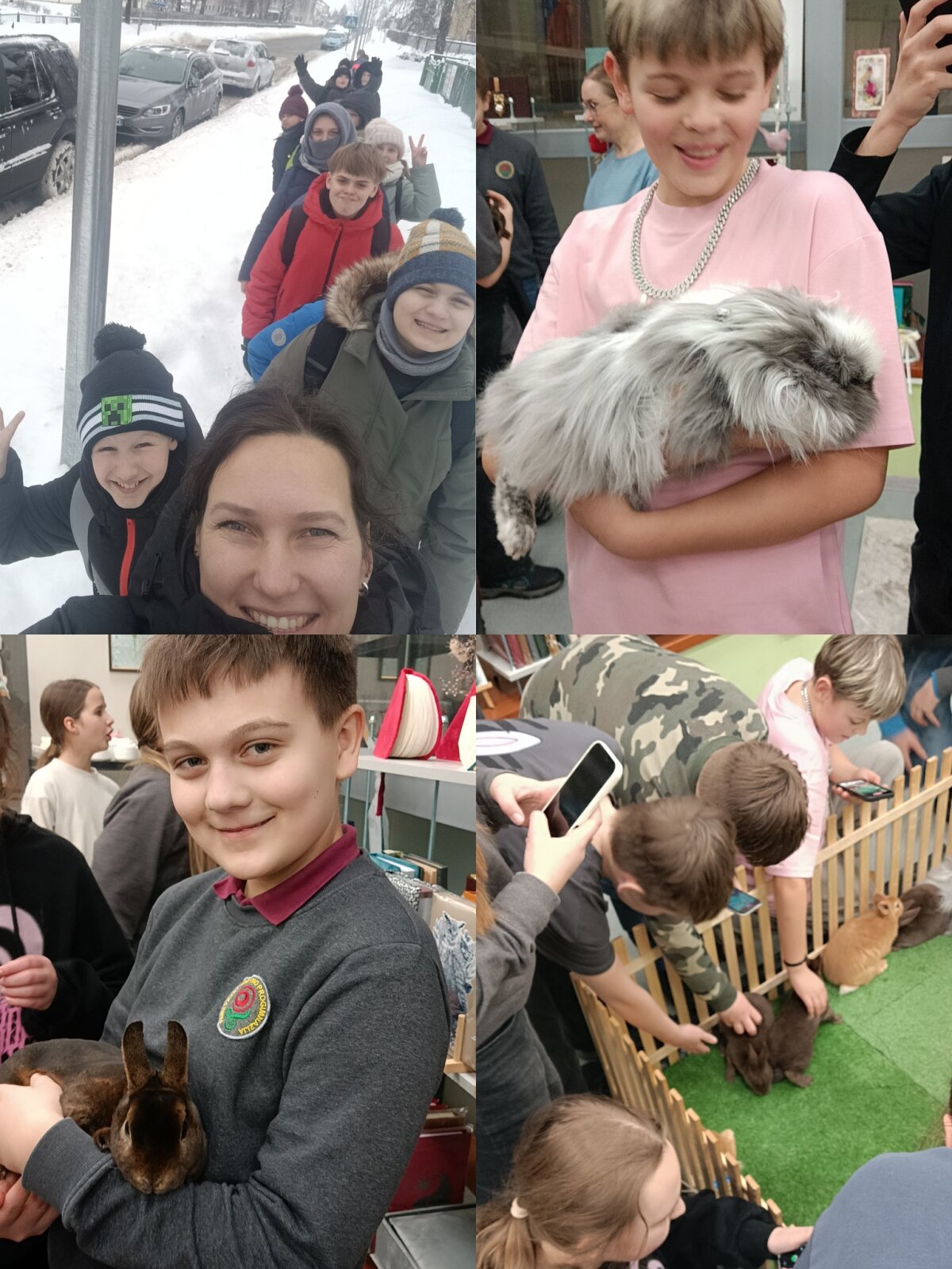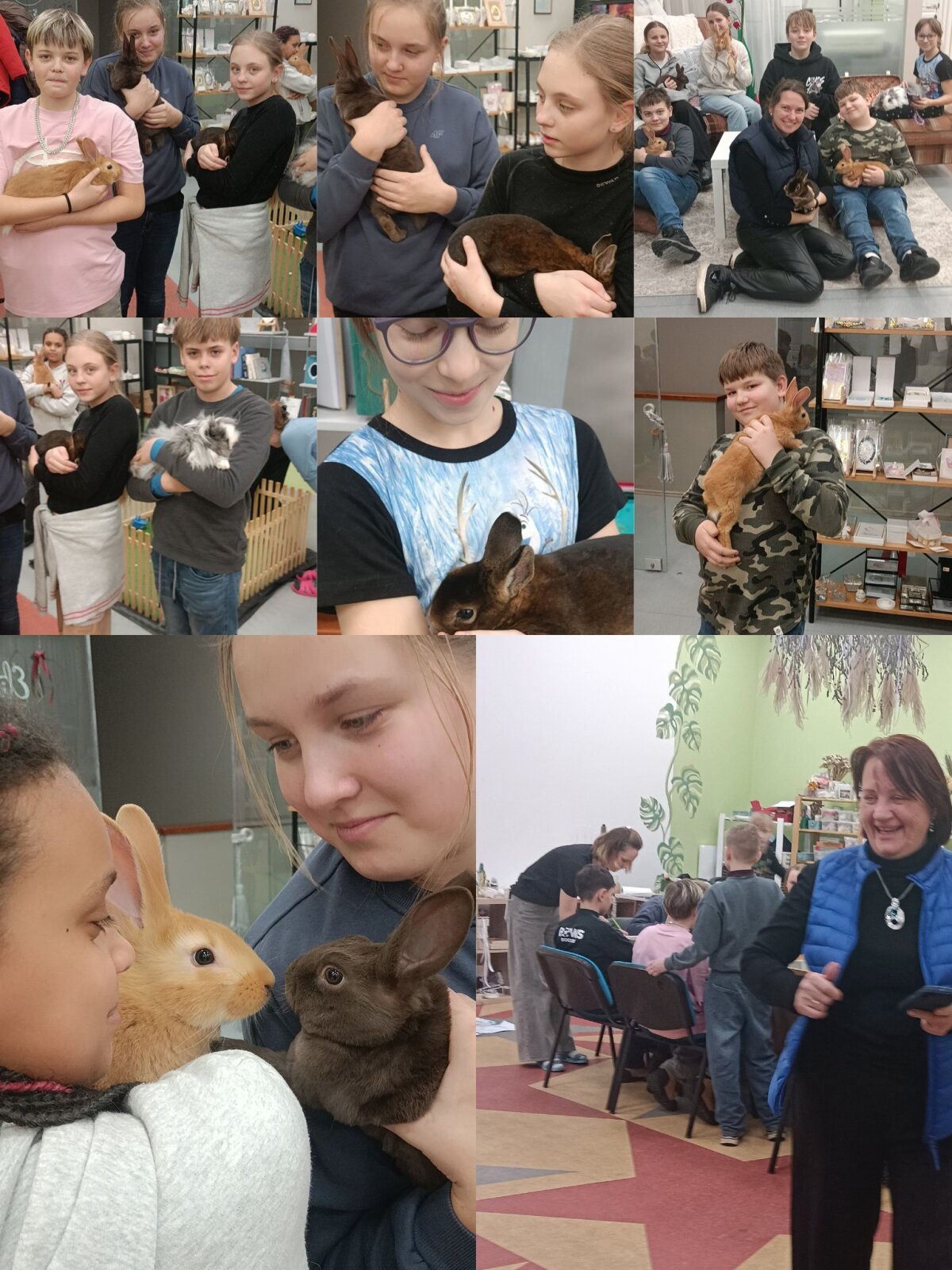 5c klasės mokiniai vasario 12 d. turėjo pamokas kitaip. Brisdami per pusnis sparčiu žingsniu jautėsi lyg fizinio pamokoje, tikslą pasiekus laukė dailės terapija - piešimas ant vandens. Mokiniai kūrybiškai liejo spalvas ir gavo nepaprastus piešinius, kurie atsidūrė ant popieriaus lapo. Po piešimo užplūdo patys šilčiausi jausmai ant rankų paėmus triušiukus. Klausėmės apie triušiukų priežiūrą, maitinimą, elgesį. Mokėmės patys švelnaus ir gražaus elgesio su gyvūnais, juos maitinome. Laikas prabėgo taip greitai ir išeiti visai nesinorėjo, nebent su triušiuku ant rankų.
