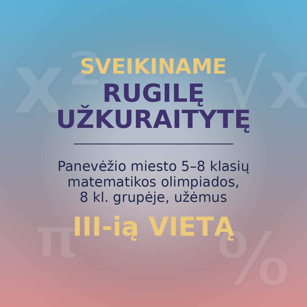 Didžiuojamės ir nuoširdžiai sveikiname 7a kl. mokinę Urtę, laimėjusią III vietą... -