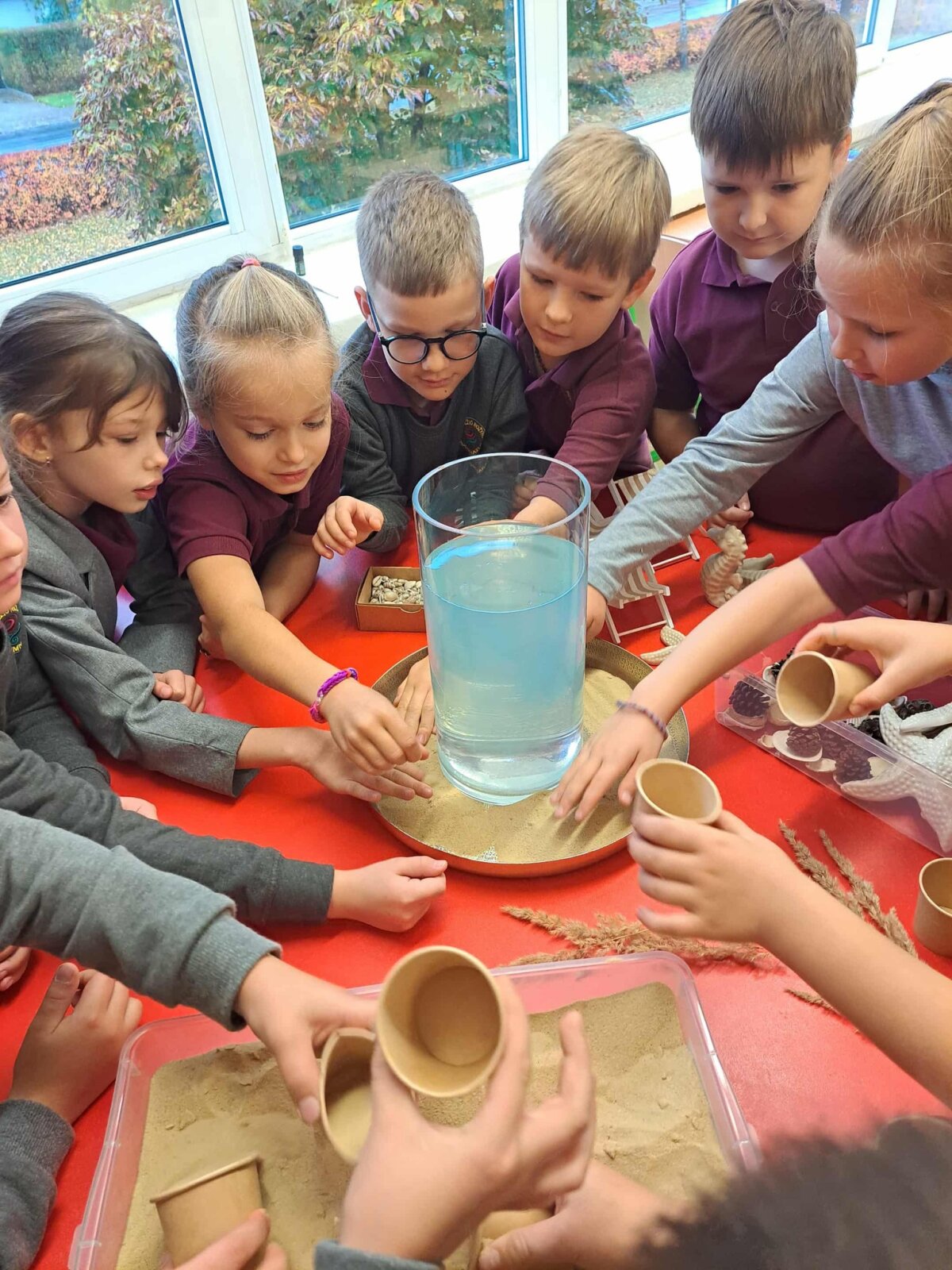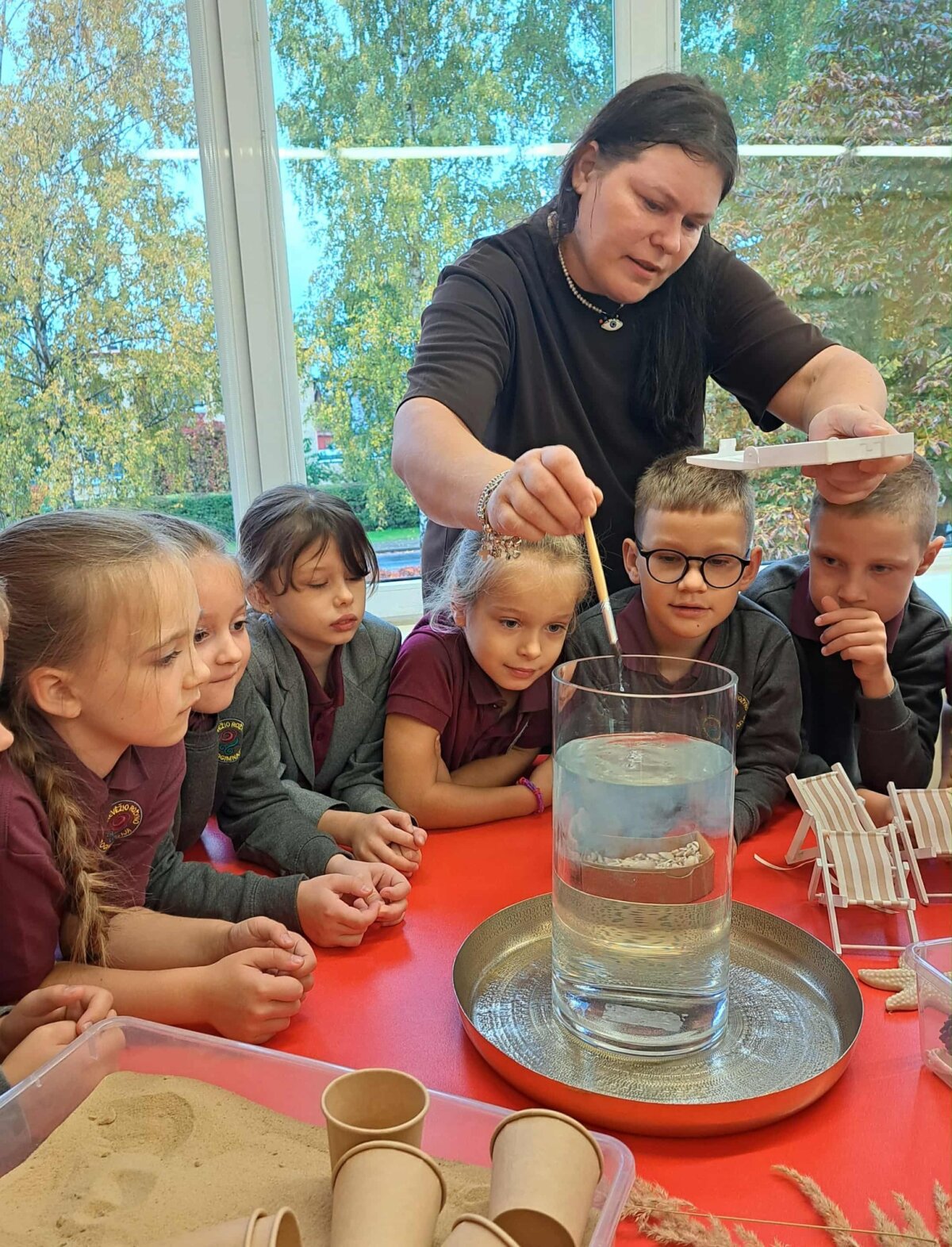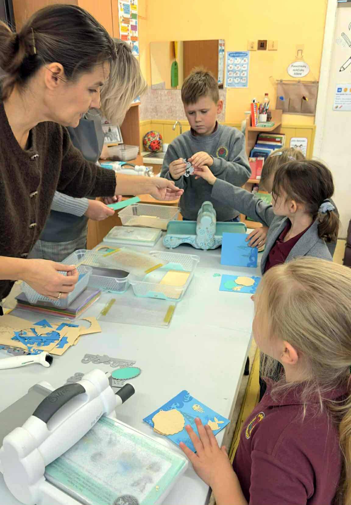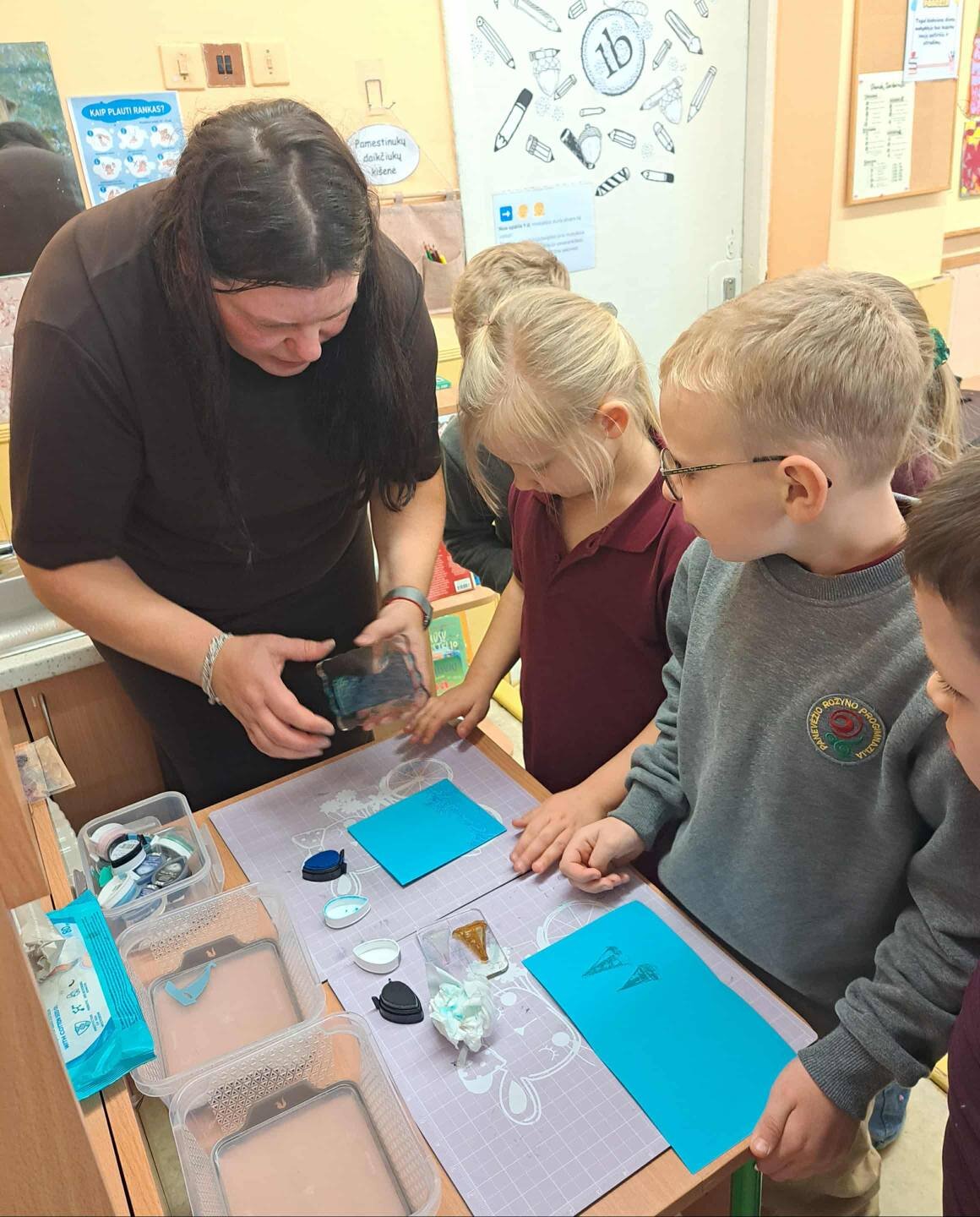 Vaikai per patyriminę veiklą leidosi į kūrybinę kelionę jūros tema. Iš smėlio ir vandens gimė jūra, vanduo nusidažė mėlyna spalva, klasėje sklido jūros aromatas, o rankose gimė nuotaikingi ir šilti jūros paveikslėliai. Kiekvienas savaip pajuto jūros alsavimą. Įkvėpti M. K. Čiurlionio muzikos, jo simfonijos "Jūra", tapytų jūrų, vaikai kirpo, klijavo, spaudavo su specialia mašinėle, kūrė savąsias bangas . Čia ir įvyko tikras jūros stebuklas - kūryba įtraukė lyg verpetas