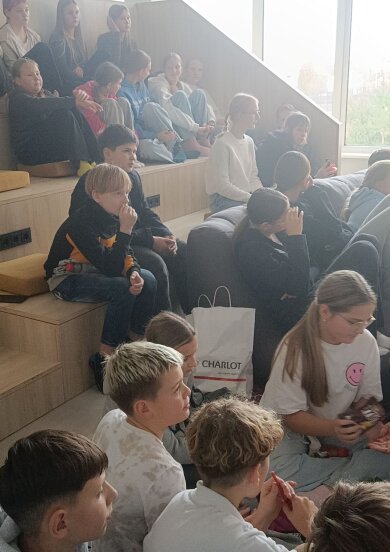 Spalio 22 dieną Rožyno progimnazijos kiemas ūžė nuo šurmulio – mokiniai su puiki... -