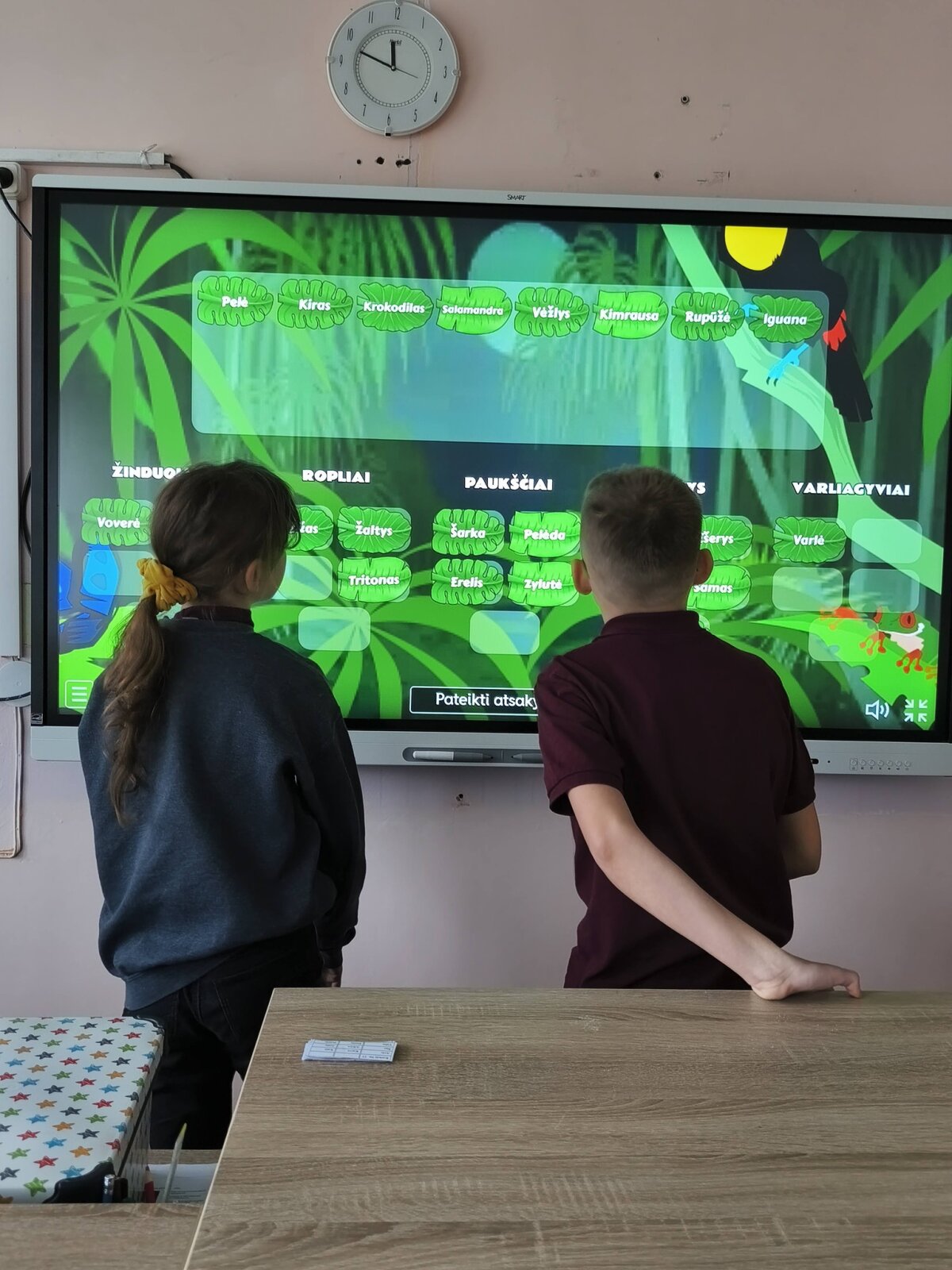 Gruodžio 5 d. 4b klasės mokiniai dalyvavo integruotoje pamokoje "Pažįsti gyvūnus". Gamtos mokslų ir biologijos mokytoja Lina trumpai priminė mokiniams apie gyvūnų klasifikaciją, pakalbėjo, kuo šios karalystės nariai skiriasi nuo kitų gyvų organizmų, ir pakvietė atlikti įdomias užduotis. Mokiniai turėjo galimybę palyginti šiltakraujų ir šaltakraujų gyvūnų kraujo ląsteles, sugrupuoti gyvūnus pagal grupes. Vėliau mokiniai pavaizdavo, kaip gyvūnai juda. Ir pamoką užbaigėme žaidimu "BINGO", kuriame reikėjo iš užuominų atpažinti, apie kurį gyvūną kalbama, ir žodį išbraukti savo lapelyje.