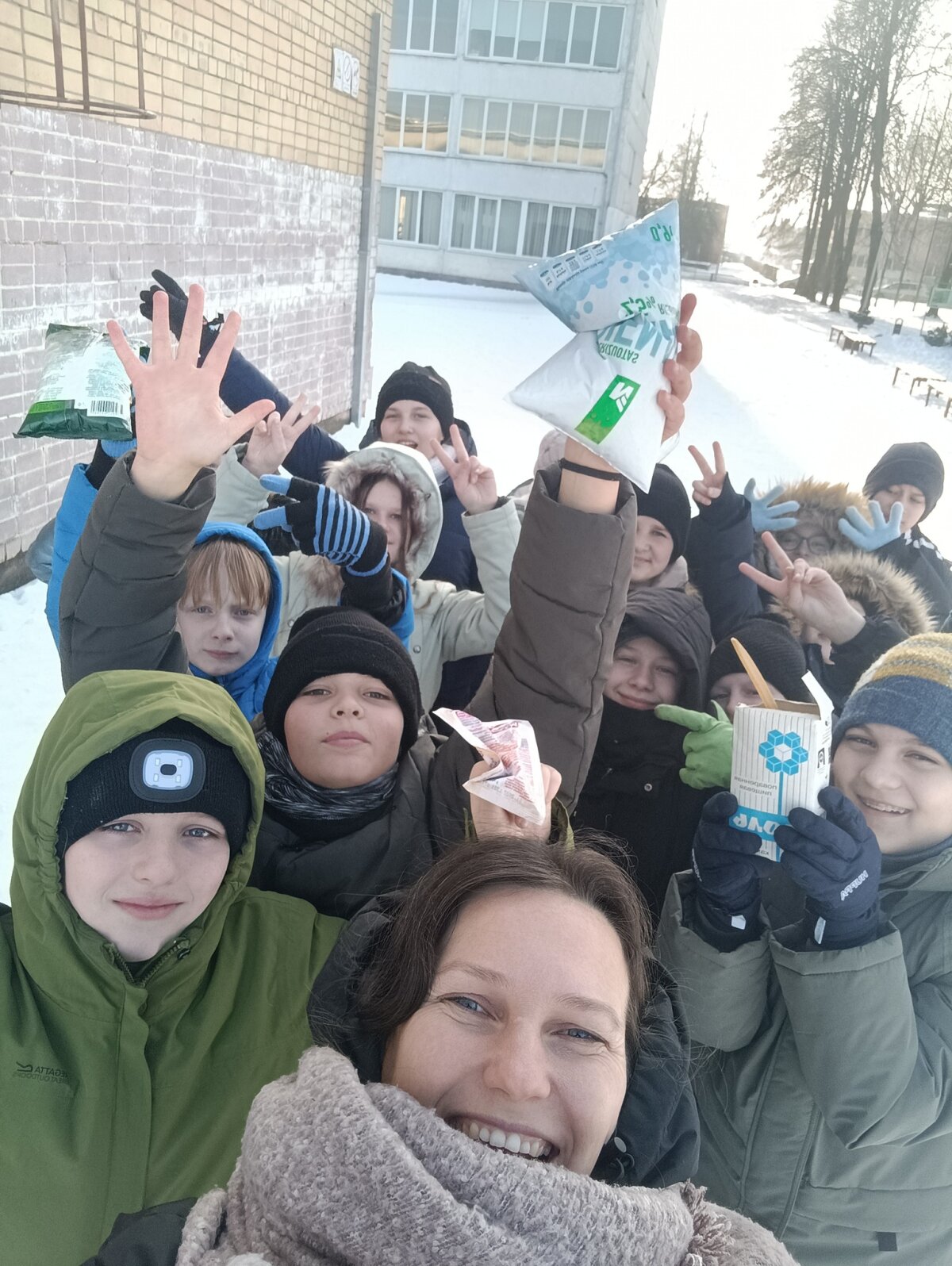 Gruodžio 19 d. Rožyno progimnazijos mokiniai Faustė, Rokas, Viktorija ir Mėja ka... -